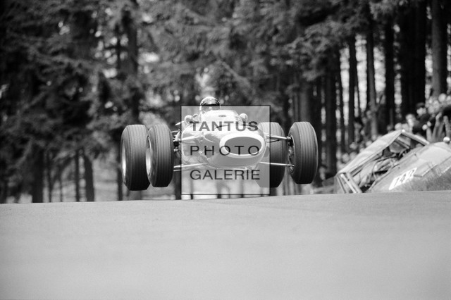 Jackie Stewart Jackie Stewart aviates his BRM 261 past the remains of a crashed touring-car at Brunnchen in the German Grand Prix. August, 7, 1966 F: Schlegelmilch Modern Print 30 x 40 cm Klavierlackrahmen 50 x 60 cm Tantus Edition EUR 250,–