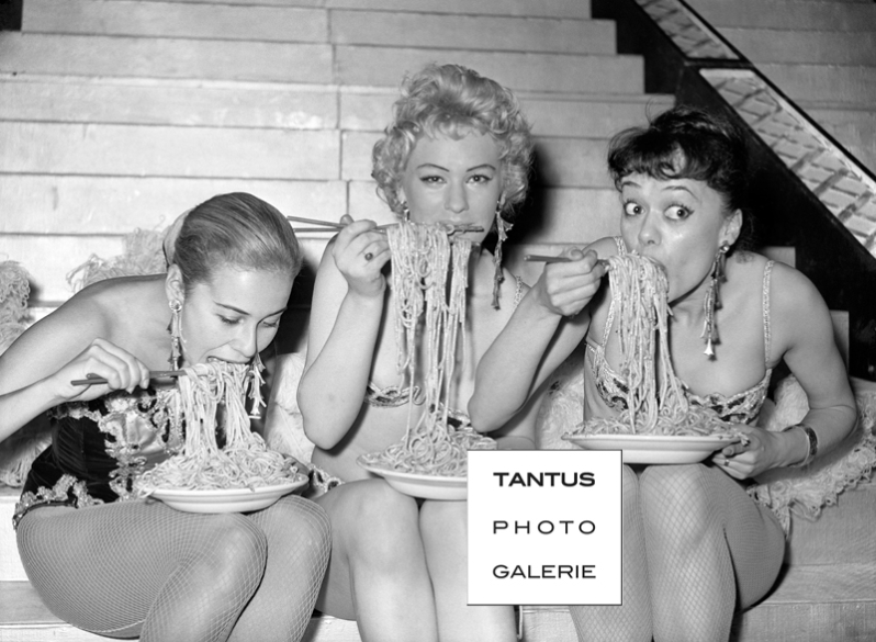 Showgirls, left to right: Kathryn Keeton, Mariella Capes and Hazel Gardner, at the spaghetti eating contest at the Soho Fair.